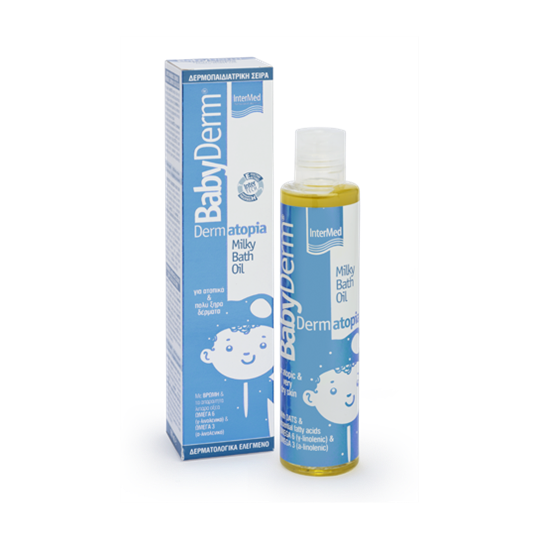 Το Babyderm dermatopia milky bath oil σχεδιάστηκε ειδικά ώστε σφραγίζει την απαραίτητη υγρασία στις βαθύτερες στοιβάδες τις επιδερμίδας κατά τη διαδικασία του καθημερινού μπάνιου, αφήνοντας το δέρμα απαλό και ελαστικό ενώ παράλληλα να ανακουφίζει από ερεθισμούς & φλεγμονές. Κατάλληλο σε περιόδους έξαρσης των συμπτωμάτων της ατοπικής δερματίτιδας.