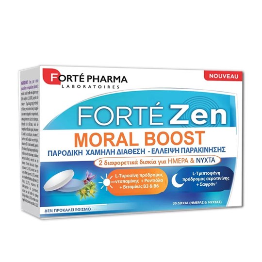 Ορισμένες περίοδοι της ζωής μπορεί να χαρακτηρίζονται από έντονο συναισθηματικό φορτίο, που οδηγεί σε προσωρινή πτώση του ηθικού και των κινήτρων, καθώς και σε ένα αίσθημα σωματικής και ψυχικής κόπωσης. Tο FortéZen Moral Boost αναπτύχθηκε από το τμήμα Έρευνας και Ανάπτυξης των Εργαστηρίων FortePharma, με σκοπό να συμβάλλει σε θετική ψυχική κατάσταση συναισθηματική & ψυχική ισορροπία.
