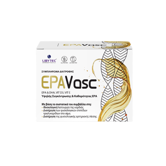 Το EPAVASC είναι ένα συμπλήρωμα διατροφής το οποίο προσφέρει τη δυνατότητα ευέλικτης χορήγησης υψηλών δόσεων ΕΡΑ υψηλής καθαρότητας. `Ενισχύεται περαιτέρω για συνεργική δράση με DHA και βιταμίνη D τα οποία συμβάλλουν στη φυσιολογική λειτουργία του καρδιαγγειακού.