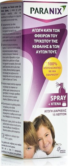 *in vitro και ex vivo μελέτες έχουν αποδείξει την αποτελεσματικότητα του Paranix Spray κατά των φθειρών του τριχωτού της κεφαλής και των αυγών τους, μετά από χρόνο εφαρμογής 10 λεπτών. Το προϊόν έχει επίσης κλινικά εξεταστεί για εφαρμογή 15 λεπτών.
