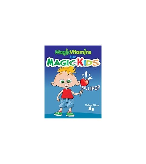 Το γλειφιτζούρι Magic Kids Magic Vitamin C Lollipop Boys με εκπληκτική γεύση βατόμουρου-πορτοκαλιού, τις ελάχιστες δυνατό θερμίδες και 10 υπερπολύτιμες βιταμίνες για να μεταμορφώσει μαγικά μια κακιά συνήθεια σε μια γλυκιά πράξη που μαζί με την σωστή διατροφή εξασφαλίζει στο παιδί όλα εκείνα τα απαραίτητα συστατικά που θα συνδράμουν στην σωματική, ψυχική και πνευματική ανάπτυξη του.